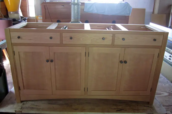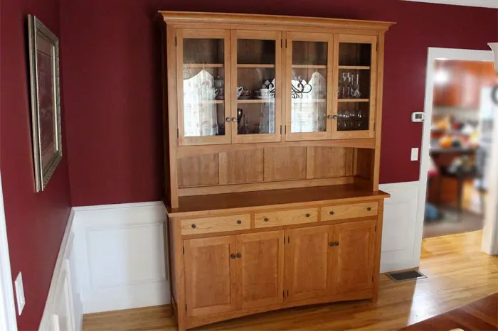 One-of-a-kind. The client wanted a simple, but well made, cabinet to complement their dining room furniture. Close attention was paid to grain alignment and sequence matching the cherry veneer.